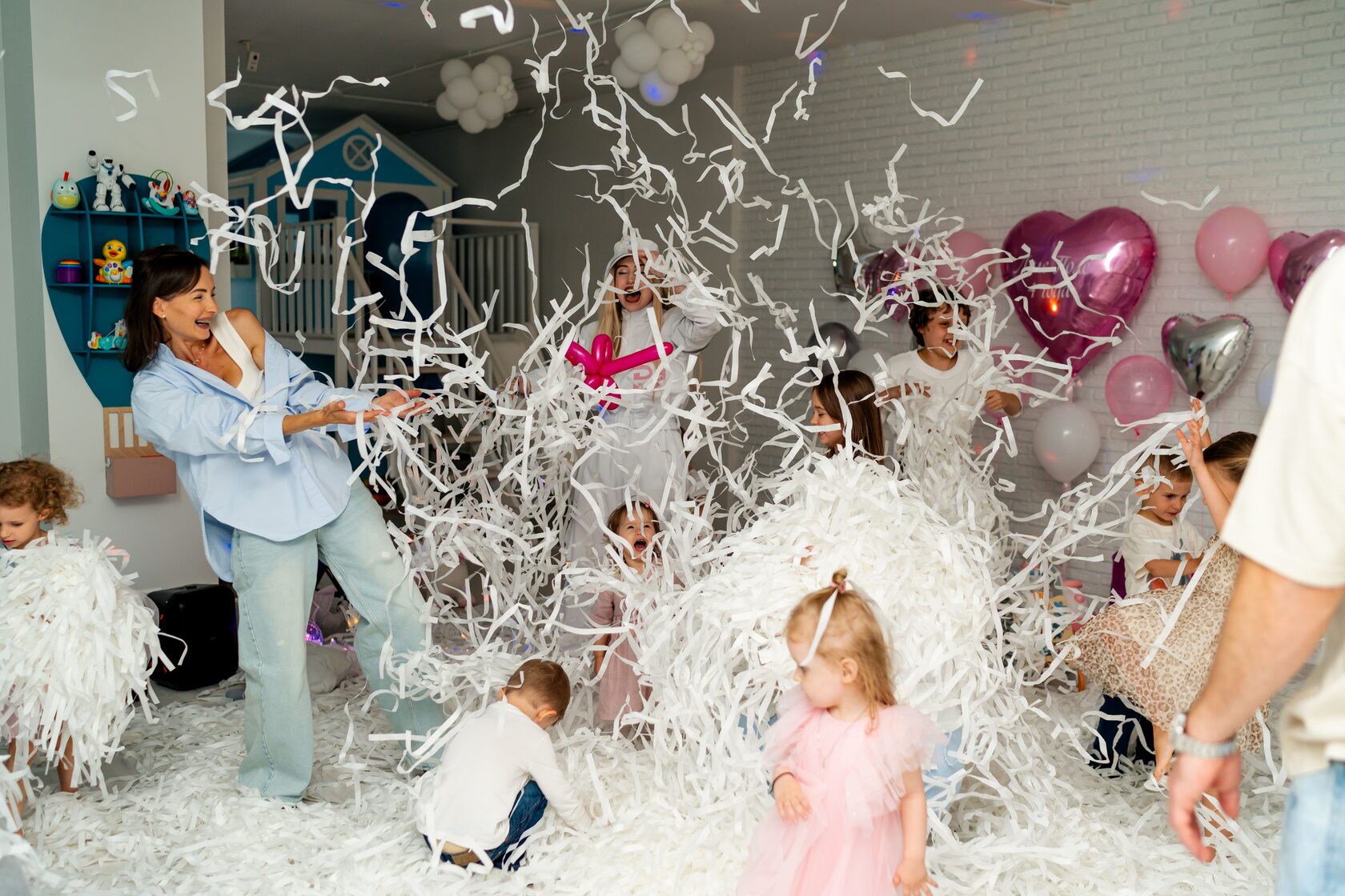 Бумажное шоу Горы белых и ярких лент закручиваются в вихре веселья и создают море эмоций. Дети и взрослые с радостью ныряют в бумажный поток, устраивают битвы и танцы. Это шоу подходит абсолютно для любого праздника — от детского дня рождения до корпоратива. Его любят все без исключения!