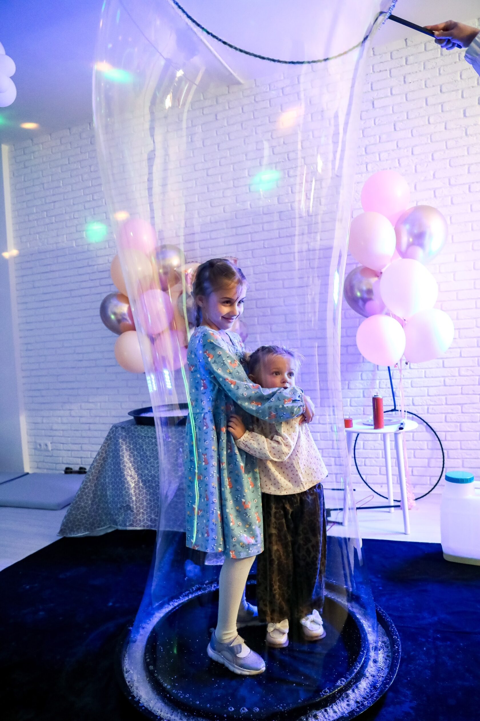 Мыльное шоу Воздушные пузыри парят под музыку, переливаются всеми цветами радуги и создают атмосферу волшебства. Дети ловят их ладошками, а взрослые наслаждаются красотой и лёгкостью момента. Огромные пузыри, фигуры внутри них и сияние света делают шоу незабываемым. Это по-настоящему прекрасное и завораживающее представление.