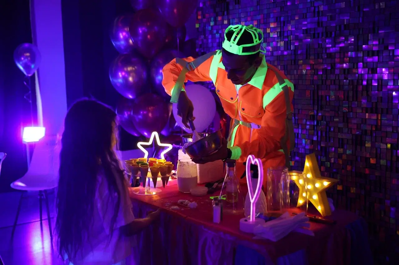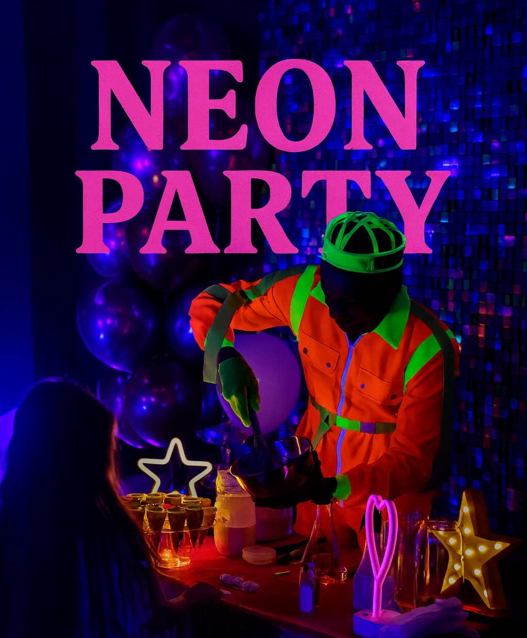 Неоновое крио шоу Это яркий взрыв света и красок, который превращает праздник в космическое приключение. Всё светится, мерцает и завораживает — дети и взрослые чувствуют себя героями светового мира. Шоу настолько привлекательное и эффектное, что гости не могут отвести глаз. Настоящее супер-супер-супер представление для любого праздника!
